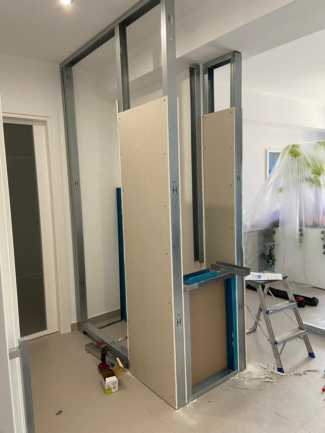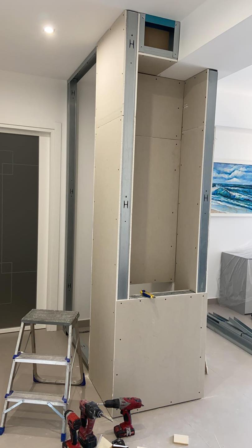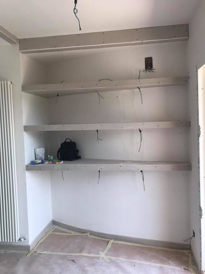 I pannelli in cartongesso sono estremamente versatili, ideali per creare pareti divisorie o elementi d’arredo come mensole, contenitori, cabine armadio… senza la necessità di interventi in muratura.